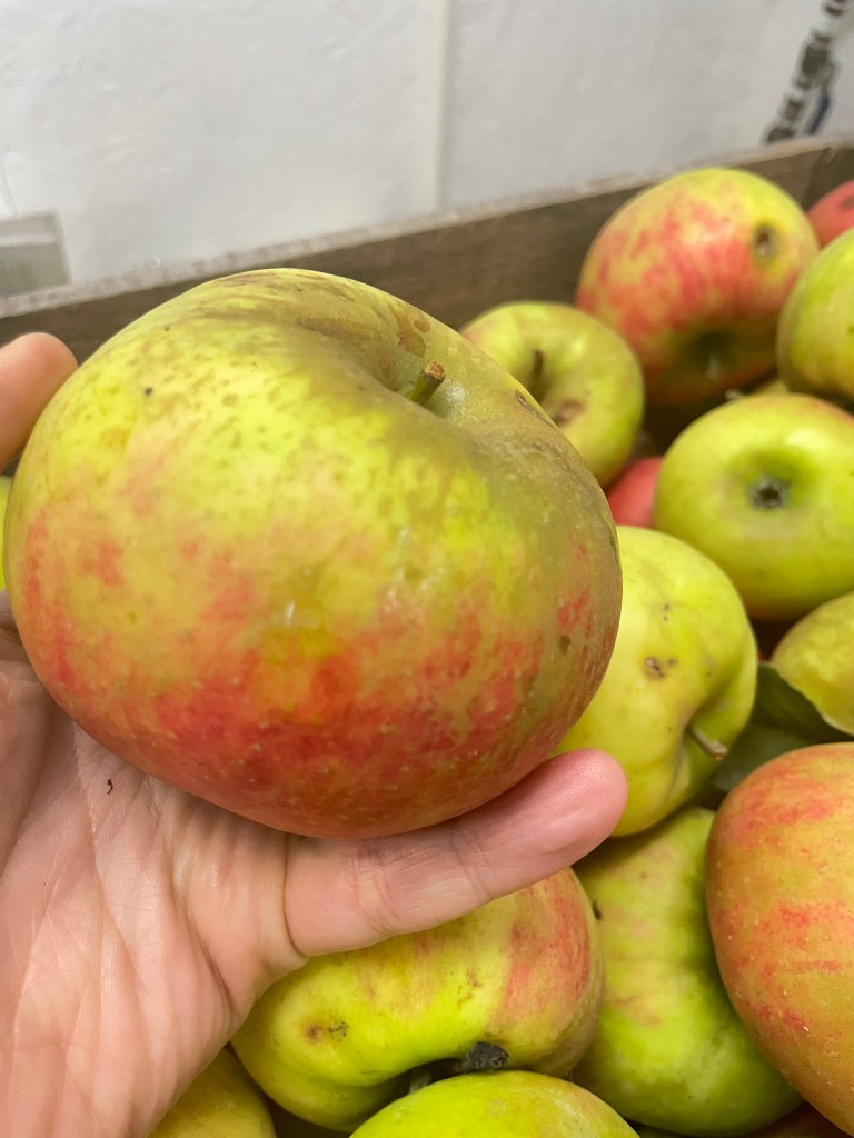 Coxe’s Orange: A classic English apple, often regarded as the finest of all dessert apples… It arose in England in the 19th century as a chance seedling, and has inspired apple lovers ever since. It remains unsurpassed for its richness and complexity of flavour.