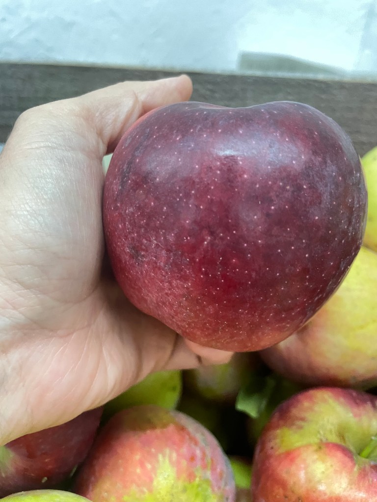MacIntosh: Typified by attractive dark red or (more often) crimson colours, and a crunchy bite, often with bright white flesh. The flavor is simple and direct, generally sweet but with refreshing acidity, and usually a hint of wine – often referred to as “vinous”.